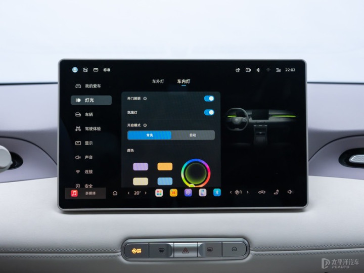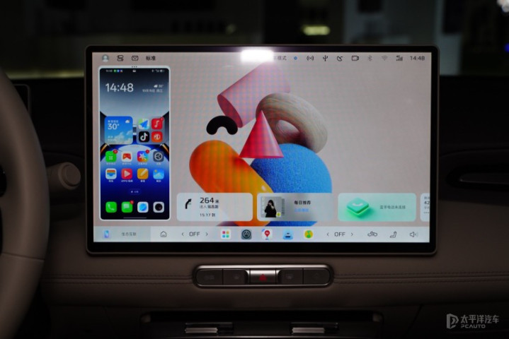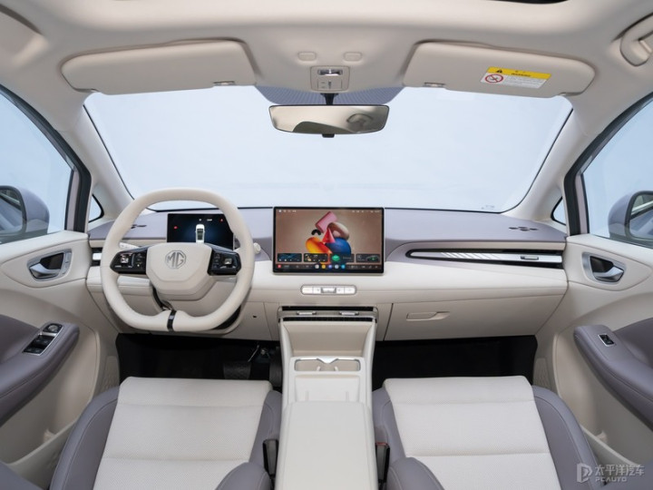 新车配备悬浮式中控屏与矩形全液晶仪表,双辐式方向盘搭配镀铬物理按键。电子怀挡取代了传统换挡机构,释放出更多储物空间,副仪表台配备双杯架与无线充电板,全景天幕带遮阳帘则提升了座舱通透感。